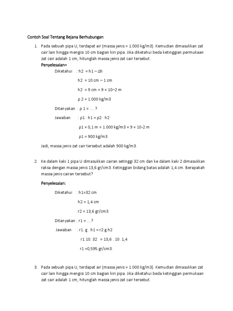 Percepatan gravitasi g Sebuah bejana yang dindingnya berlubang pada tiga tempat yang berbeda tingginya kemudian diisi air hingga penuh. Pipa kapiler dimasukkan ke dalam bejana berisi zat cair. Hukum bejana berhubungan berbunyi.