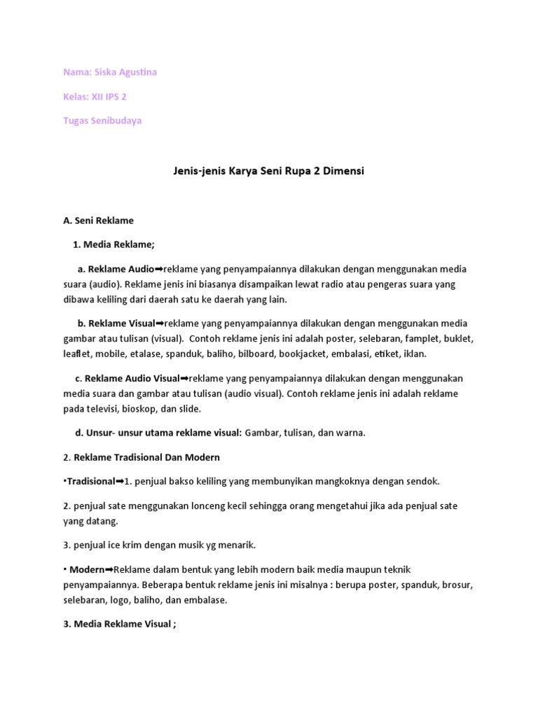 Jenis Jenis Karya Seni Rupa 2 Dimensi Pdf