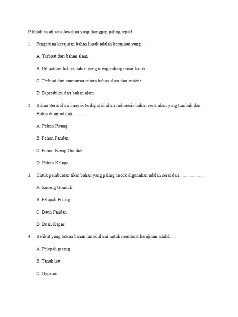 Soal Kunci Jawaban Latihan Uts Pts Kelas 7 Smp Pelajaran Prakarya Kerajinan Bahan Serat Alam Halaman 3 Tribunnewsmaker Com