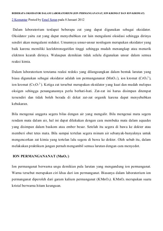 Beberapa Oksidator Dalam Laboratorium Ion Permangananat Ion Kromat