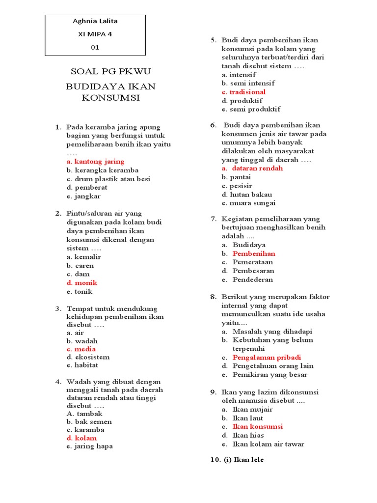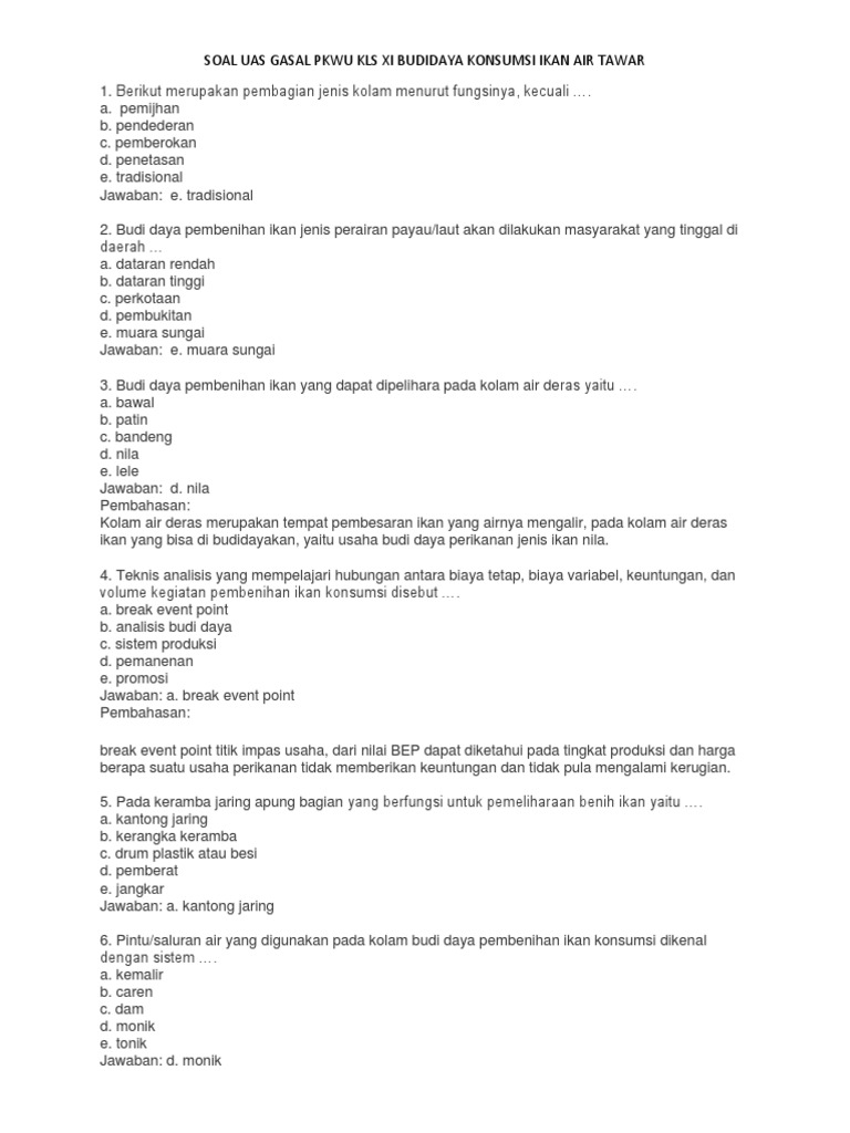 Ejercicio De Kejuruan 1 Apat Xi Tehnik Pengembangbiakan Komoditas Perikanan