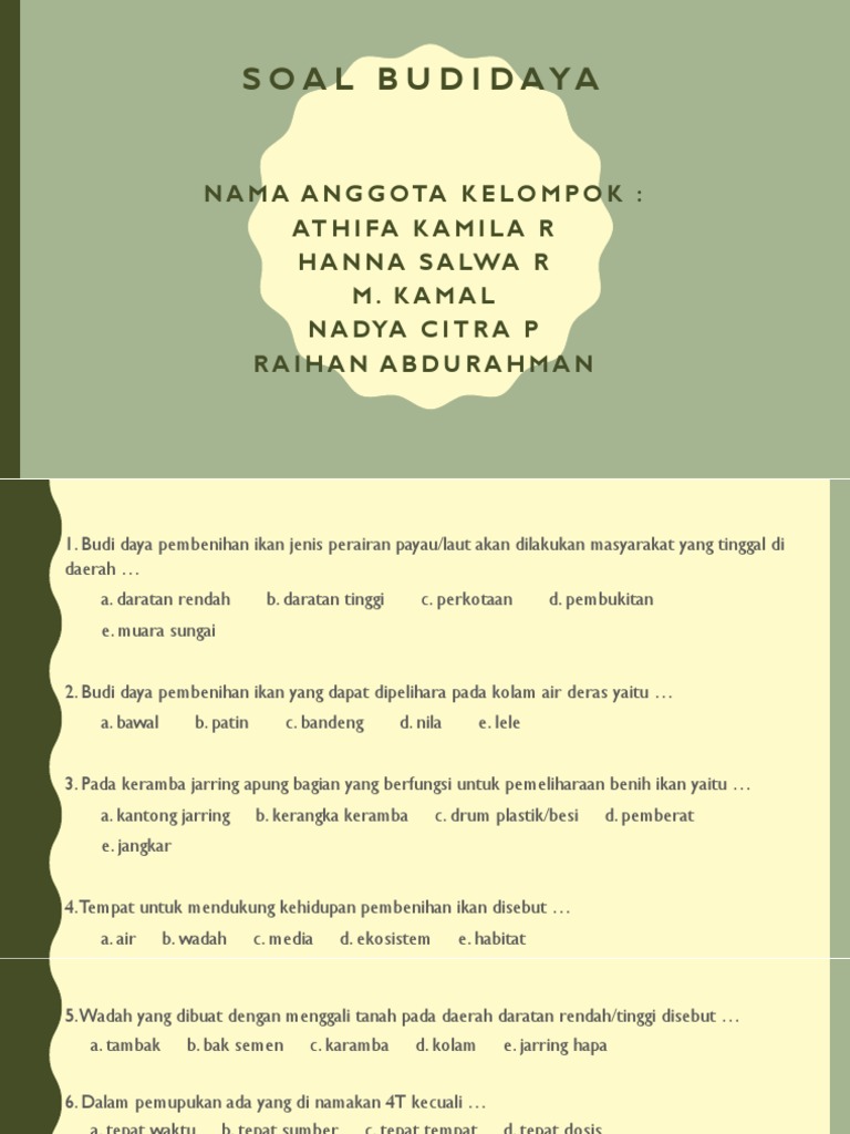 Ejercicio De Kejuruan 3 Apat Xi Tehnik Pembesaran Komoditas Perikanan