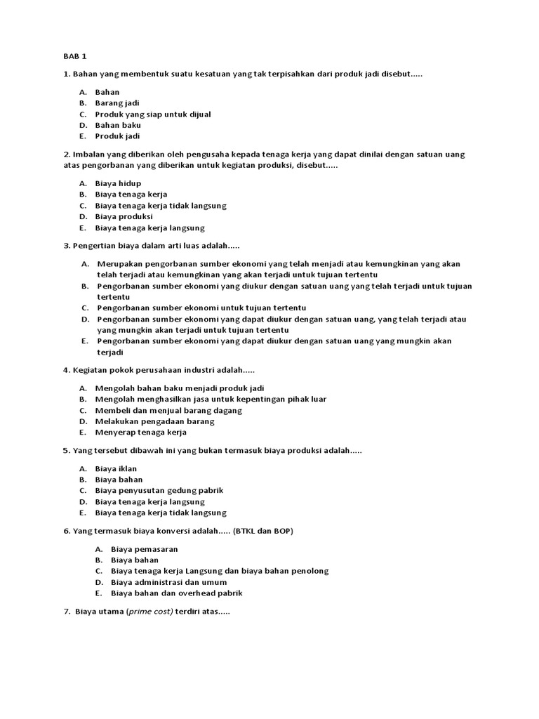 Soal Manufaktur Pg Lengkap Smk Akuntansi Pdf