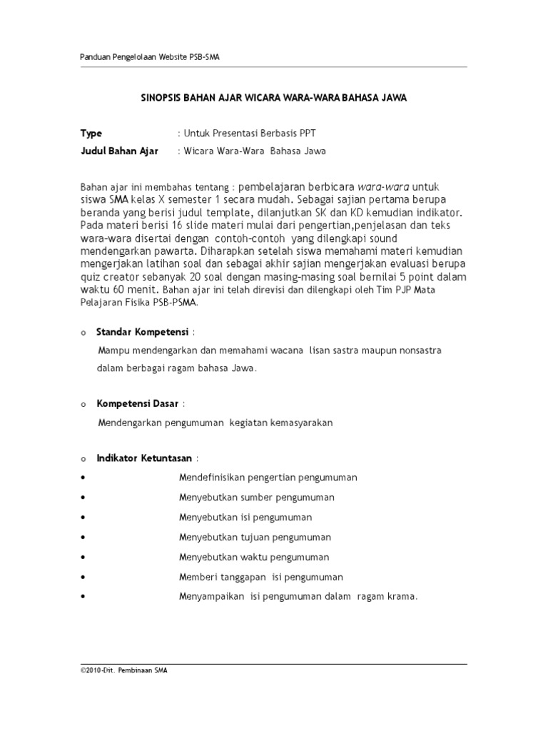Contoh Wara Wara Sayembara Bahasa Jawa 2019-11-13T051600-0800 Rating. Peserta didik membuat teks wara-warapengumuman. Manungsa ora bisa urip ijen lan mbutuhake pasrawungan karo wong liya.