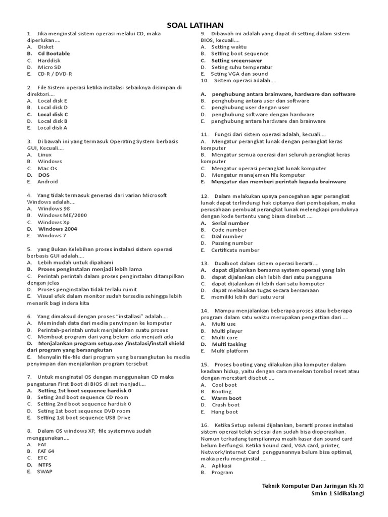Soal Latihan Teknik Komputer Dan Jaringan Kls Xi Smkn 1 Sidikalangi Pdf