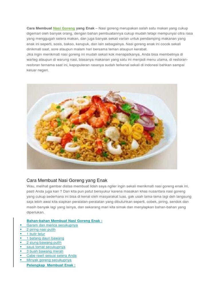 Unsur Intrinsik Cerpen Nasi Goreng - Iya buini sudah kok Teriakku dari dalam kamardengan tak bersemangat ku langkahkan kaki ini untuk turunDi ruang makan Ibu sudah duduk dengan menu makan pagi yang berjejer rapi di meja makanNasi gorengtelur mata sapiroti bakar dan susu. Dari analisis cerita itu dapat dijelaskan berikut.