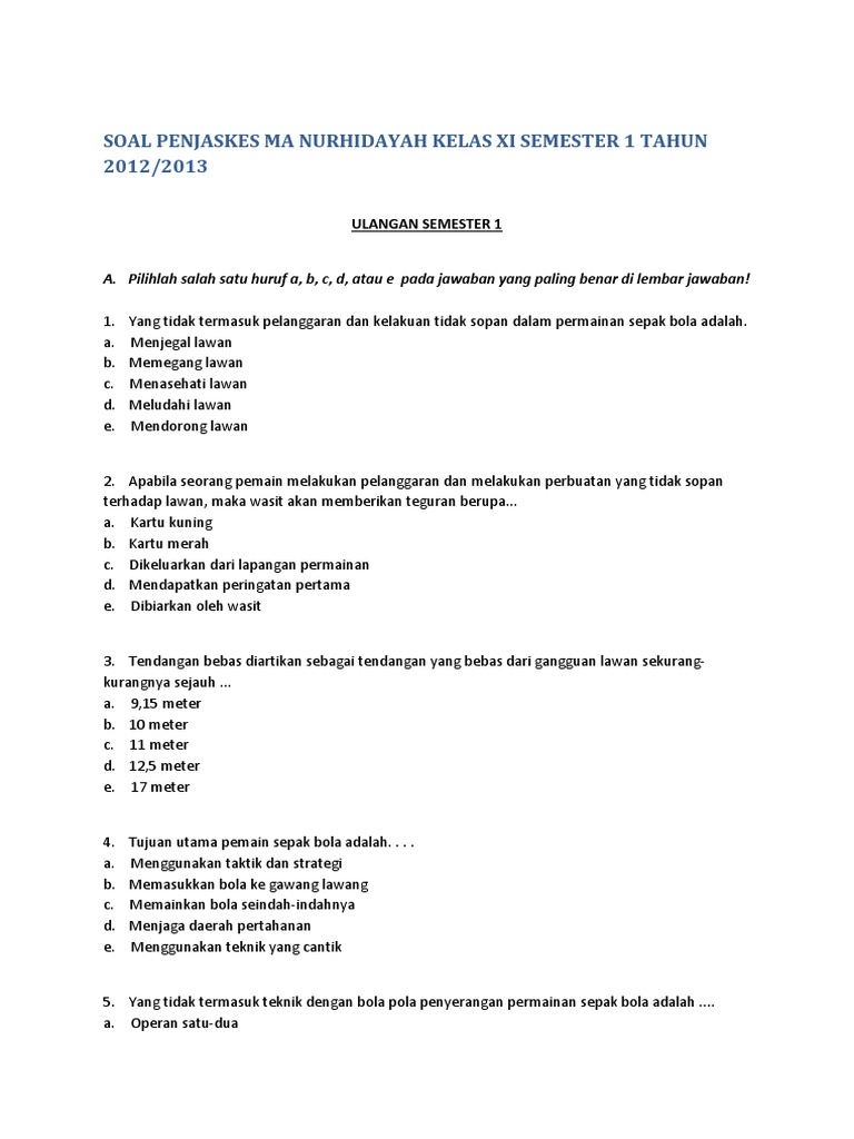 45 Contoh Soal Uas Penjaskes Kelas 12 Sma Ma Dan Kunci Jawabnya